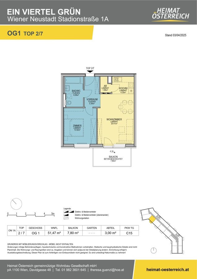 ERSTBEZUG „ein viertel grün“ in Wiener Neustadt - zentral gelegene 2 Zimmerwohnung mit Balkon