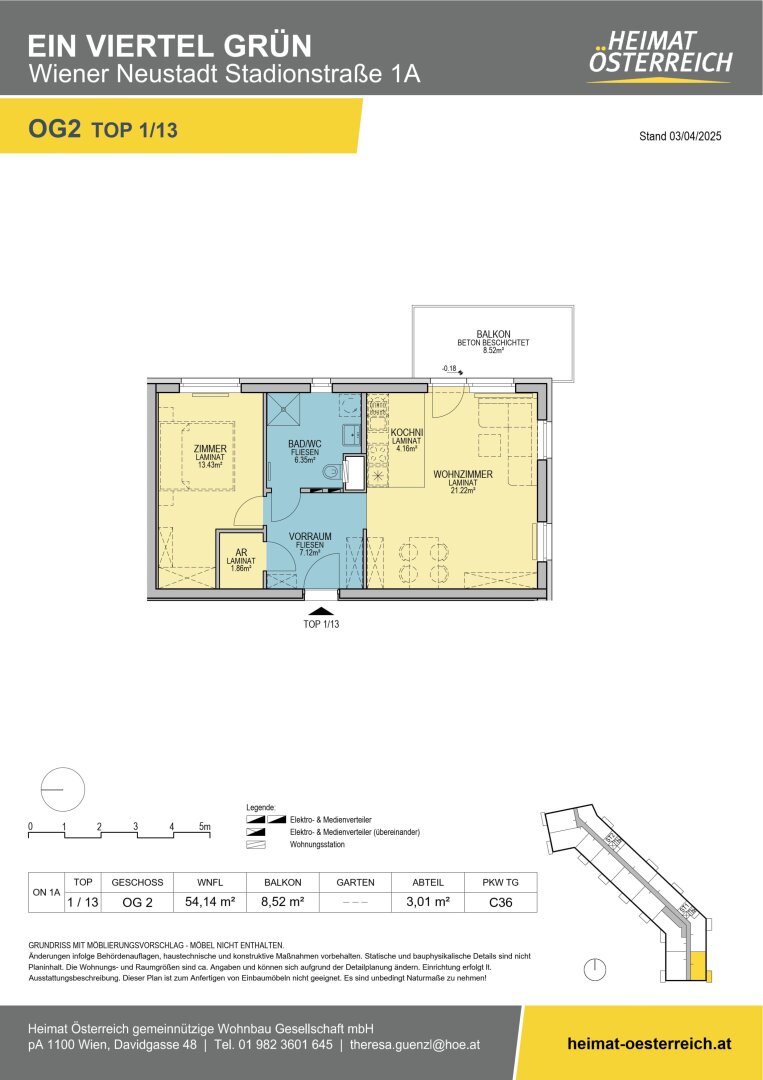 ERSTBEZUG „ein viertel grün“ in Wiener Neustadt - schöne 2 Zimmerwohnung mit Balkon - perfekt für Pärchen
