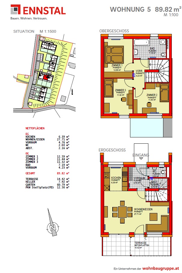 Vorige Nächste zum Inserat der gemeinnützigen Bauvereinigung WOHNBAUGRUPPE Wohnung Top 5 , 8773 Kammern im Liesingtal Verfügbar WOHNBAUGRUPPE Miete mit Kaufoption Wohneinheit ✔ 4 Zimmer 89,82 m² Fläche 898,56 € Miete Dokumente 1. Grundriss 2. Grundriss
